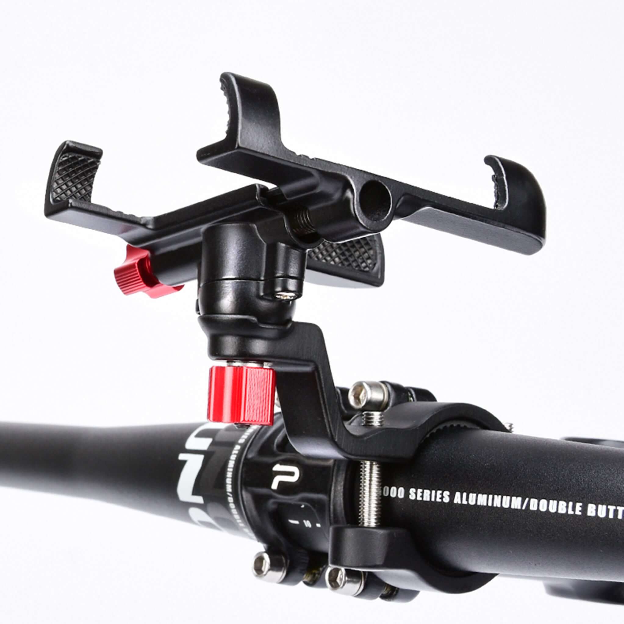 A phone holder is a small device that securely mounts your smartphone to your bike's handlebars. It typically uses a clamp or straps to hold your phone in place, allowing you to easily see your phone screen while riding.
