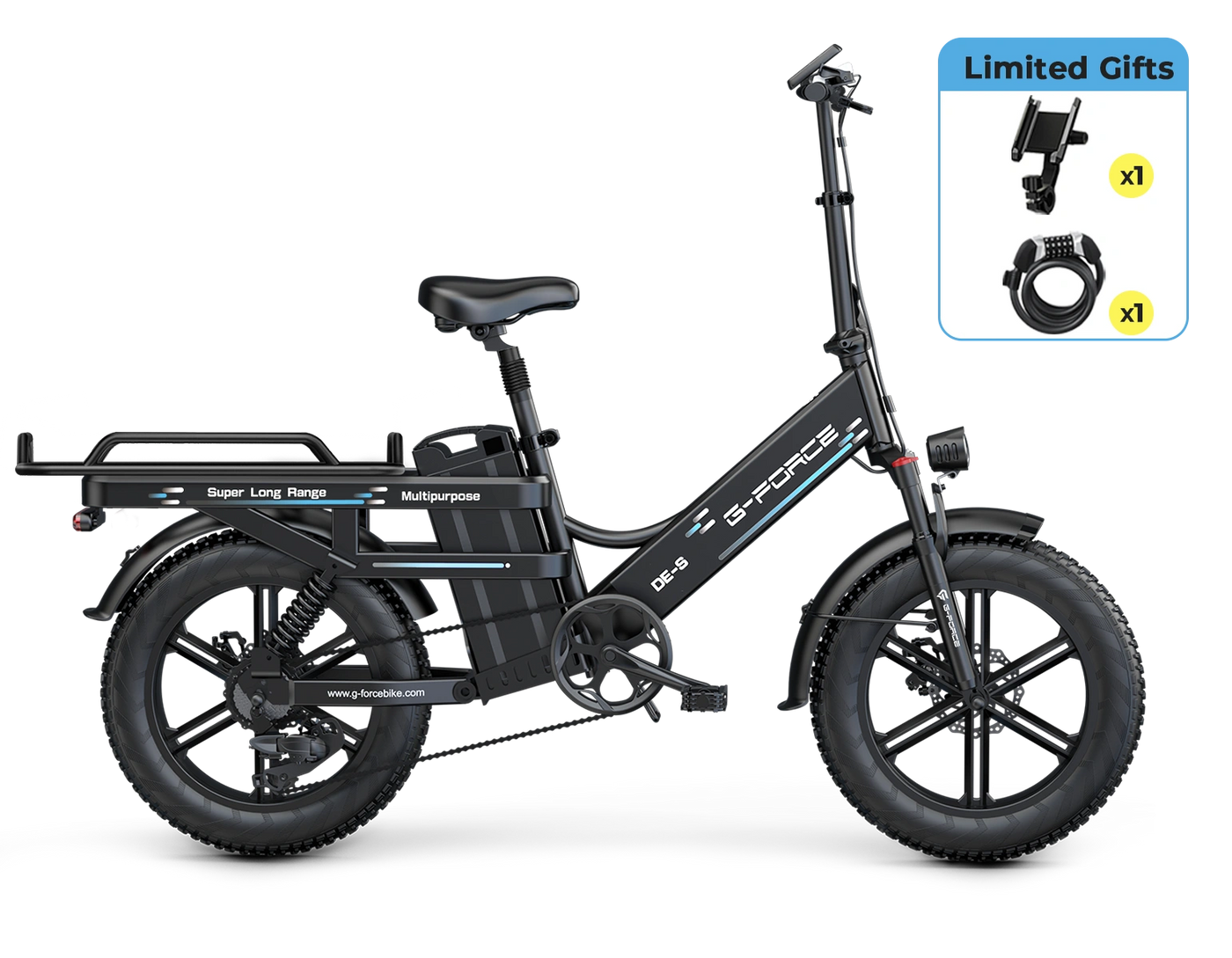 • Extended Cargo Rack: The longer rack design significantly increases load capacity, making it easy to transport more goods, improving delivery efficiency and meeting daily transport needs.